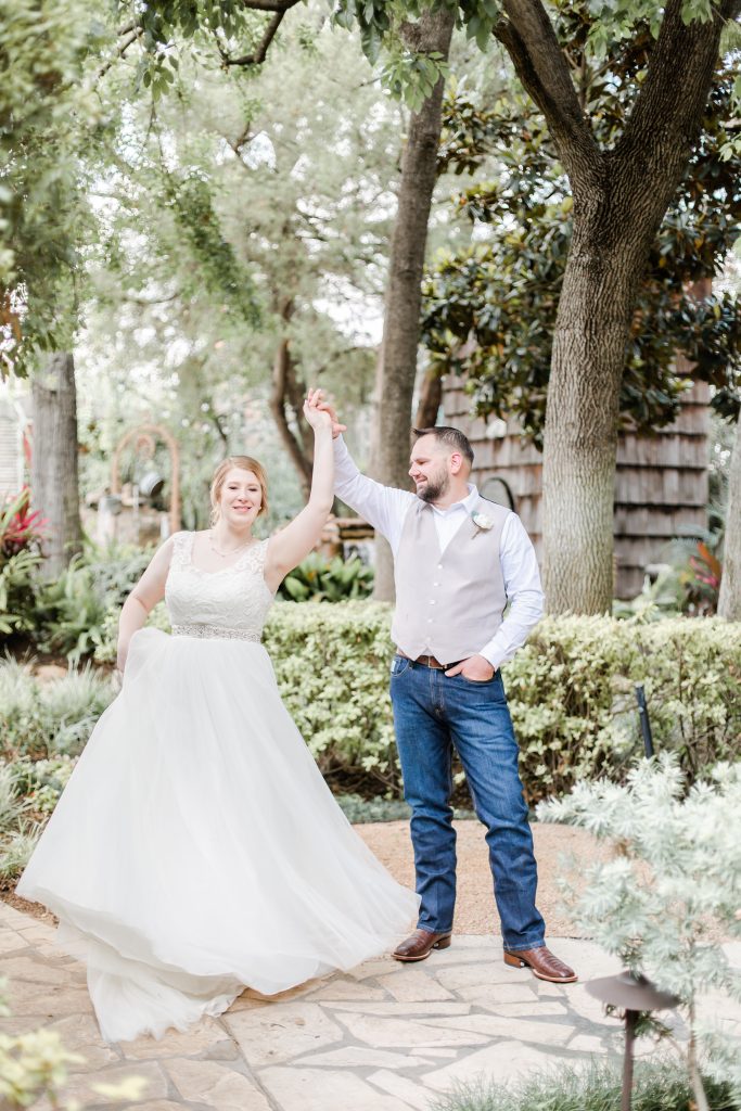 Ashley and Carl tied the knot with just a few close family and friends at Brenner’s Steakhouse in early June. The shade of the garden was the perfect setting for their wedding and brunch reception. There was even a little windmill!